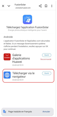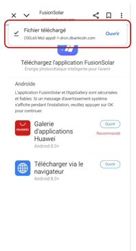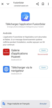 L’application Fusion Solar n’est malheureusement pas disponible sur le Play Store. Voici les étapes à suivre pour la télécharger sur votre téléphone :