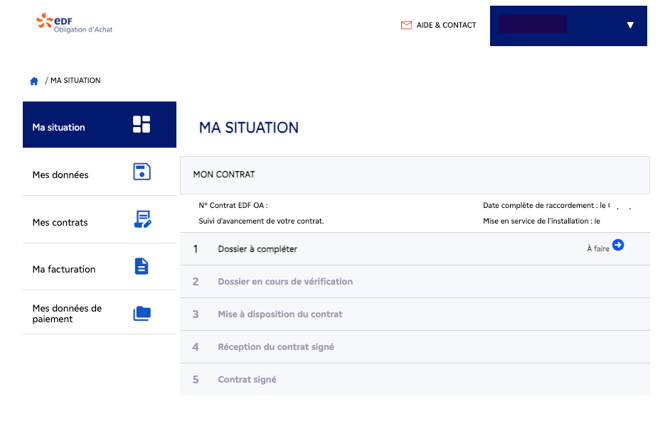 Il faut attendre la mise en service de votre installation par Enedis pour pouvoir compléter votre espace producteur. À ce moment-là, EDF OA vous contactera directement, l’objet du mail sera “[EDF Obligation d'Achat] BTAXXXXX - Dossier à compléter”.